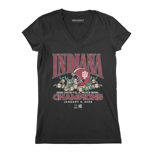 - Red, yellow and orange print on a super-comfortable heather navy tee.