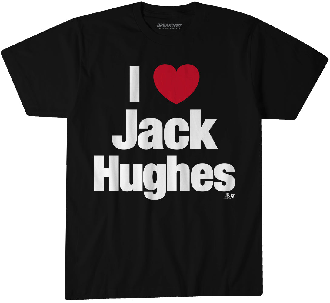 Show your love for a hockey hero with this I Heart Jack Hughes design.